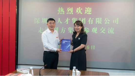 6月16日,深圳市人才集團有限公司黨委書(shū)記、董事長(cháng)幸輝,副總經(jīng)理孫同立、董事長(cháng)聯(lián)絡(luò )員葉州成一行三人蒞臨圓方集團參觀(guān)座談。
